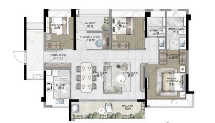 125㎡四房以横厅设计拓宽生活维度,独立衣帽间彰显主人尊贵;