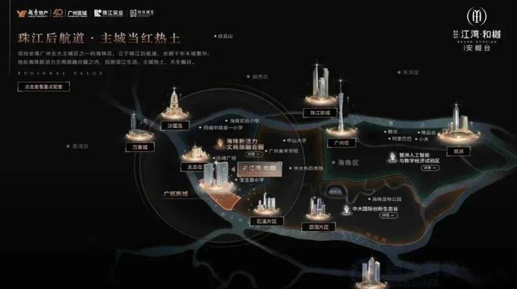 秀珠实城发·江湾和樾坐落广州五大主城区之一的海珠区,立于珠江后航道,坐拥千年羊城繁华;地处海珠新活力文商旅融合圈之内,低密滨江生活,主城热土,天生瞩目。