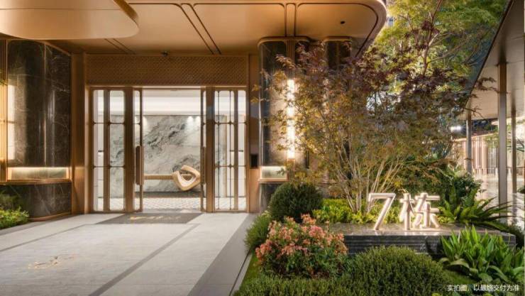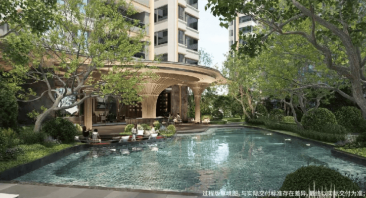 社区打造度假酒店式园林,配备下沉式水景、风雨连廊等设施,入户大堂采用酒店式设计,居住舒适度拉满,同时实现120%-130%超高得房率,空间利用率远超同类型项目。