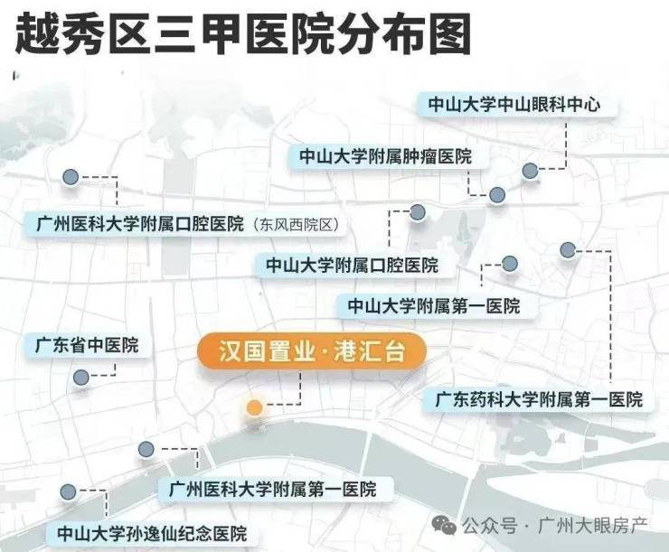 2km内的三甲医院覆盖广东省中医院、广州医科大学附属第一医院、广州市红十字会医院不等,老人小孩突发疾病便于快速就医。