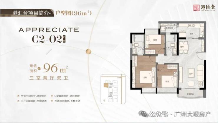 96㎡纯南向三房两厅两卫,全优空间组合,动静分区,三开间朝南,全明通透,L型奢敞厨房,动线合理,开阔双阳台,多样生活