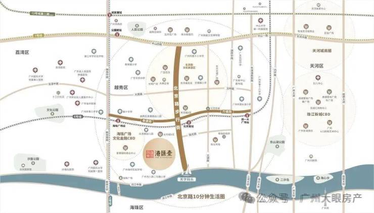 项目楼下100米就是6号线北京路站,另外步行600米就是2号线以及6号线交汇站海珠广场站,珠江新城、琶洲、白鹅潭皆在项目8公里范围内。