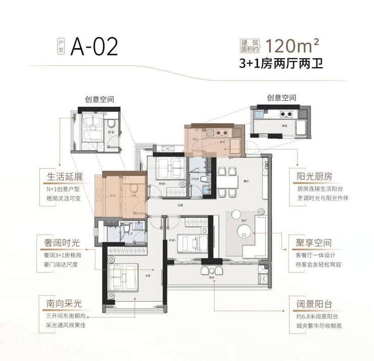 A-02 建筑面积约120㎡ 3+1房两厅两卫
