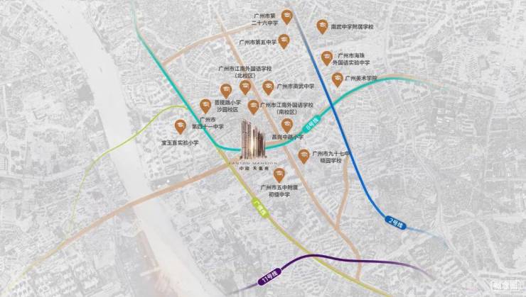 奠基启幕期,定调老城标杆。地块历经多轮深耕,2020年中旅投资接盘后正式定名中旅天宸府,依托海珠老城成熟底蕴与“珠金琶”辐射红利,规划打造4栋超高层住宅,总建面约12.8万㎡,719户低密布局[3][5]。步行200米达8号线宝岗大道站,800米衔接广佛线沙园站,多维路网15分钟直达陈家祠、20分钟通达珠江新城,奠定“优教+通勤+烟火”三重顶豪基因[1][2]。
