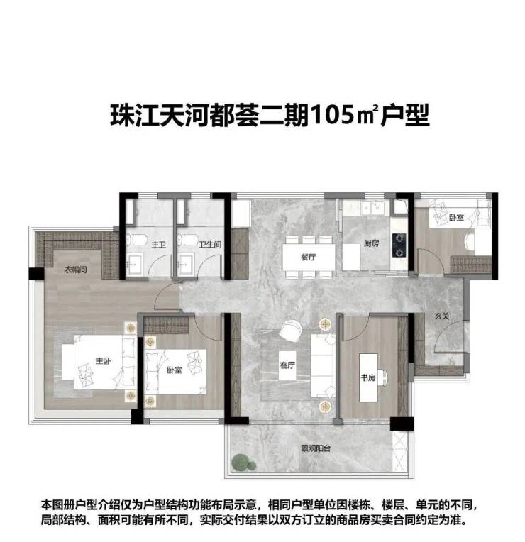 约71㎡ 3空间2卫,天河罕见户型,生活起居更从容