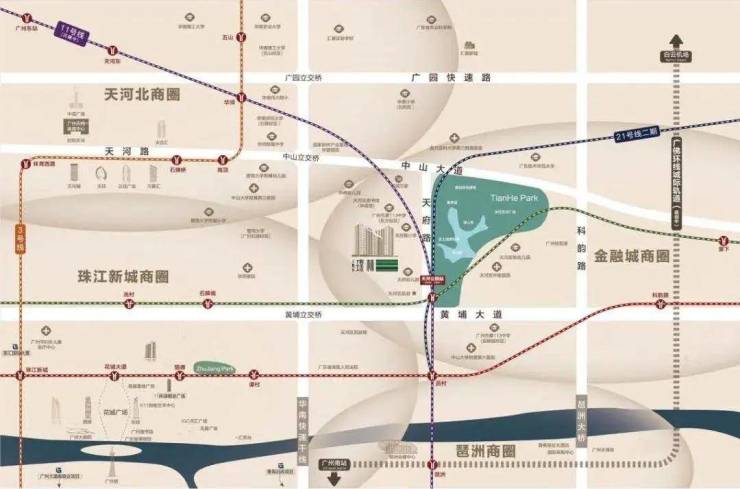 步行500m即达亚洲最大在建地铁枢纽--天河公园地铁站,坐拥11、13、21号线三地铁交汇,畅通无阻通达全城。