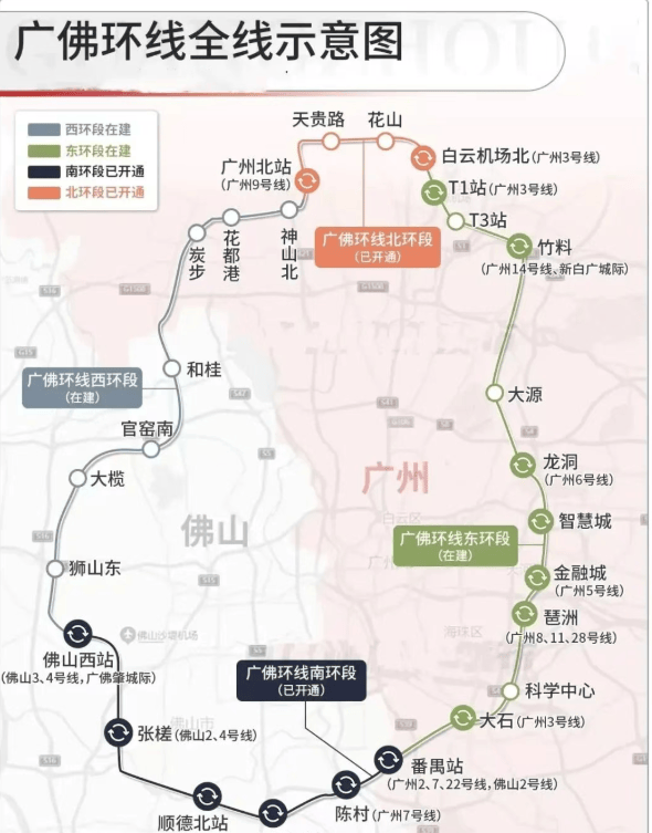 广佛环线东环同步启用,3站抵达琶洲,途经金融城、白云机场;