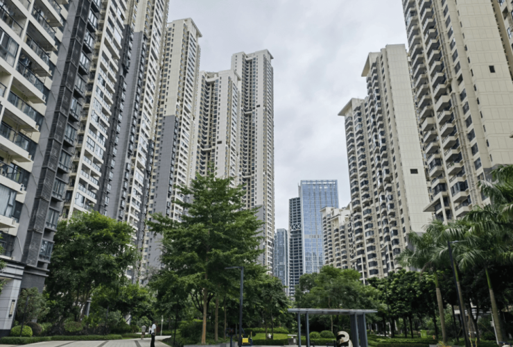 项目共建设20栋住宅楼,其中南区14栋、北区6栋,楼层19-65层,2梯3户、2梯4户、3梯3户、3梯4户。建筑采用新现代主义风格,外立面比较简约,灰白色外立面的城市天际线,映衬蓝天白云。入户大堂虽然简单,但也都贴砖了,电梯厅采用黄色条纹瓷砖,整体也比较明亮整洁。