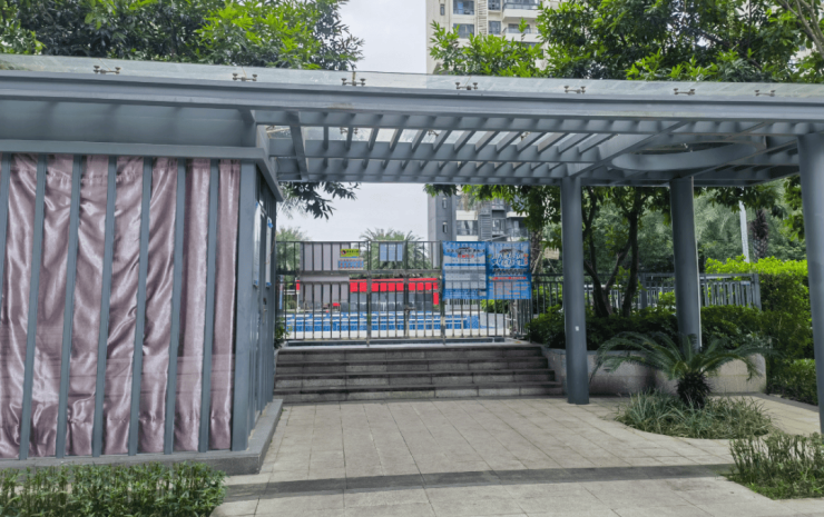 相比排列式布局的蜿蜒曲折、曲径通幽,围合式布局的园林就是一眼望到头,少了几分层次感,但也多了一些大气。内部该有的泳池、儿童乐园、健身区、休憩区、阳光大草坪都一个不少。