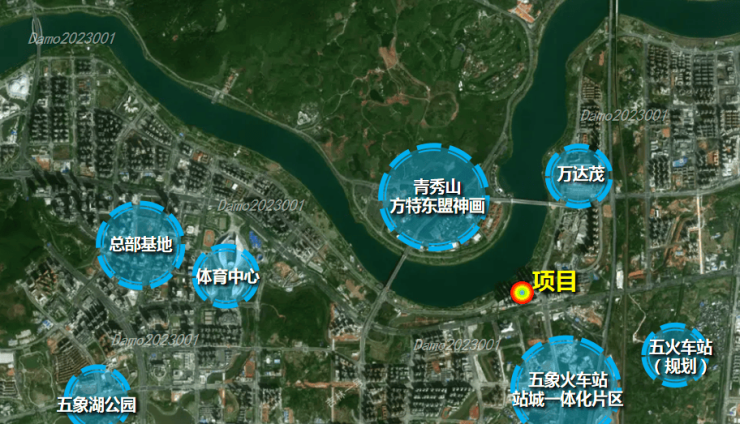 项目位于五象大道旁,属于文旅板块,周边有总部基地、万达茂、方特东盟神画、新媒体中心、五象火车站(规划)等。距总部基地约4公里,与方特东盟神画、青秀山隔江相望,距离规划的五象火车站仅1公里。目前地段略显偏远,但长期发展看,该区位仍有较大提升空间。