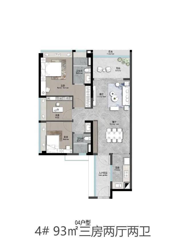 93㎡三房是刚需友好型户型,南北通透,总价约530万起,客厅与阳台相连保证了采光,两个卧室均带飘窗,空间利用率不错 。