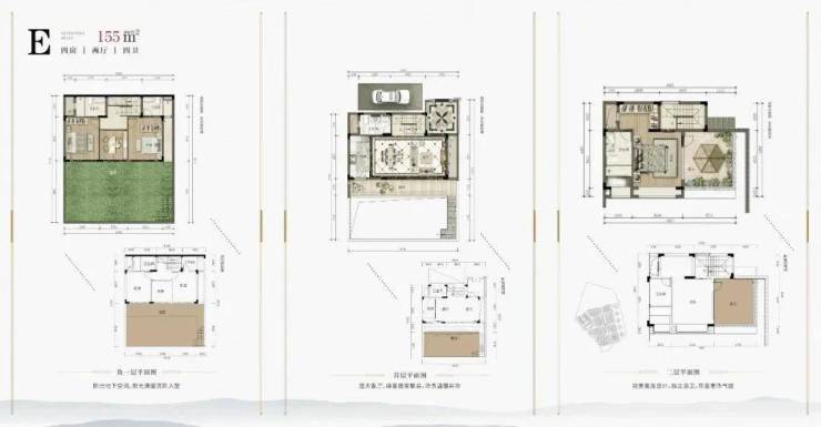 136㎡合院C户型户内庭院面积近60㎡,饱览天地的主庭院、一角风韵的下沉式庭院、情景交融的超大露台……各有情致,趣意盎然。