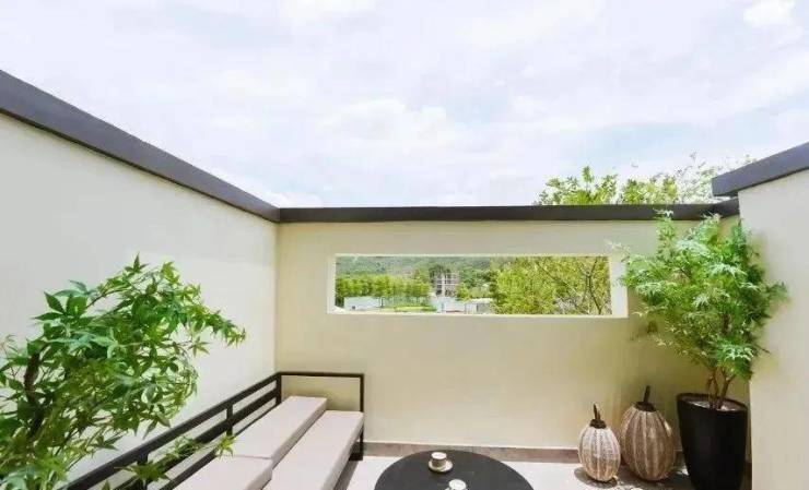 三楼开辟空中庭院,拥有约4.2米阔尺面宽,阔达16㎡,围以低栏。品一杯香茶,看一段风景,观礼人生皆在此处。