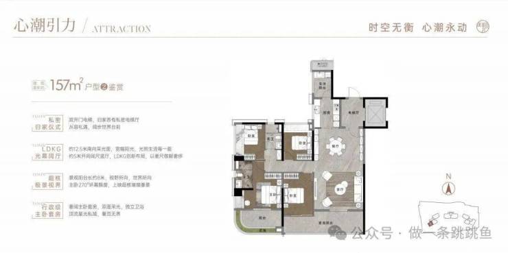 项目一共有3栋楼,层高20-26,总户数仅166户,产品为157-196-203-253-257平大平层,主打豪宅,面向的客群非常纯粹。