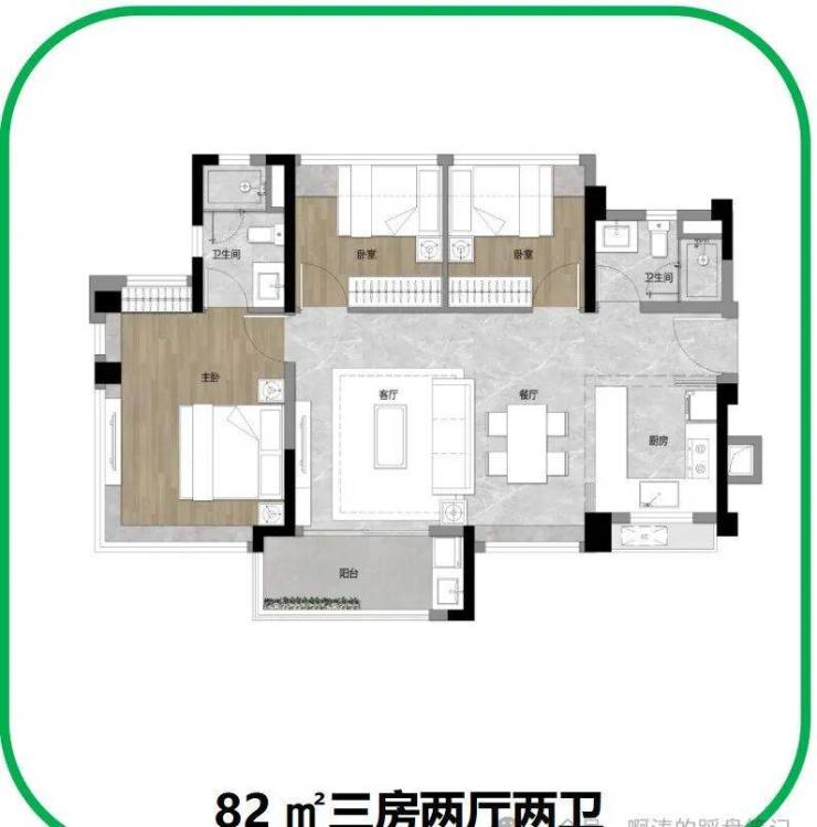 💥全能满足——约82㎡南北通透横厅三房两卫