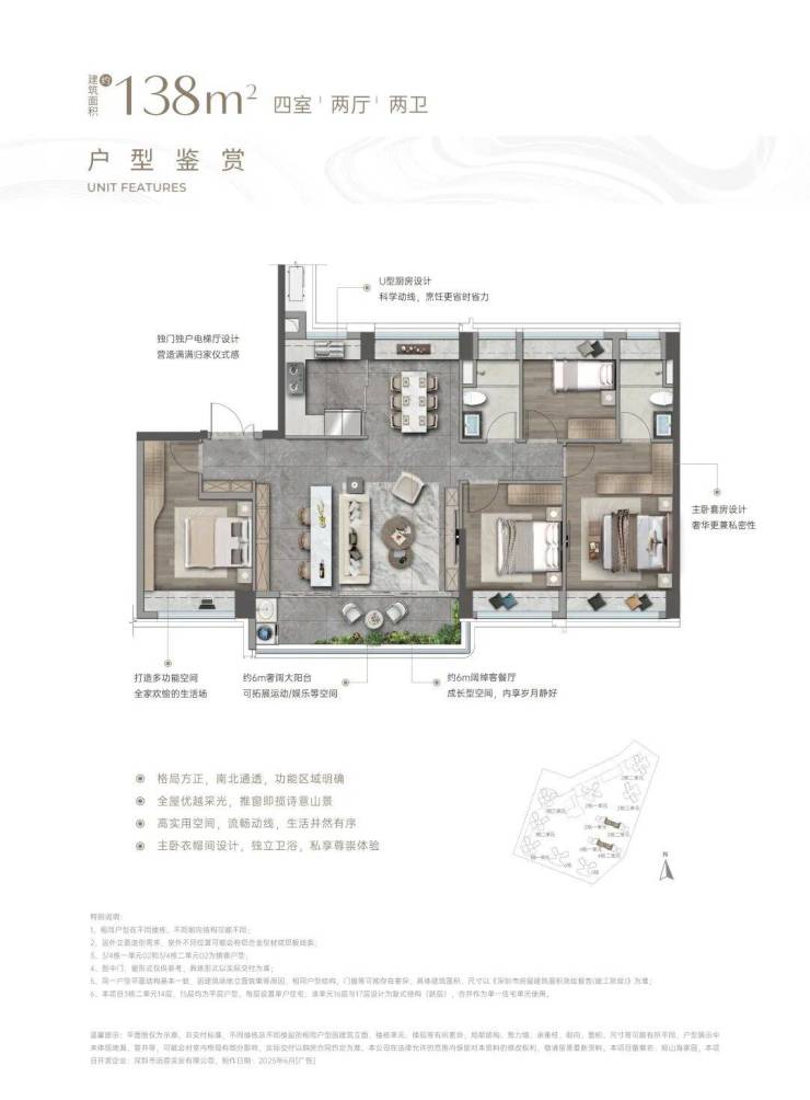 ⑥【一步到位性价比王牌 前海改善头等舱】4栋建面约138㎡奢阔山居范本:LDKB一体化,增配多功能厅、最大约15.5米南向四开间、约6m宽境阳台、主卧270°巨幕飘窗带独立卫浴及衣帽间、最高约94%拓展后综合使用率
