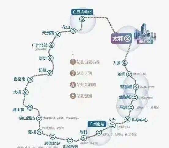 项目占据广佛环线太和站,从轨道线路上来看,不仅可以通达白云机场、广州南站、天河、琶洲等广州重点枢纽及金融CBD,还能便捷往来广佛两地,不论是平日通勤,还是周末往来广佛逛街探店都非常方便。从速度上来说,广佛环线规划最高时速达200km/h,是广佛地铁的2.5倍,大大节省了往来双城的时间,进一步促进广佛深度融合。