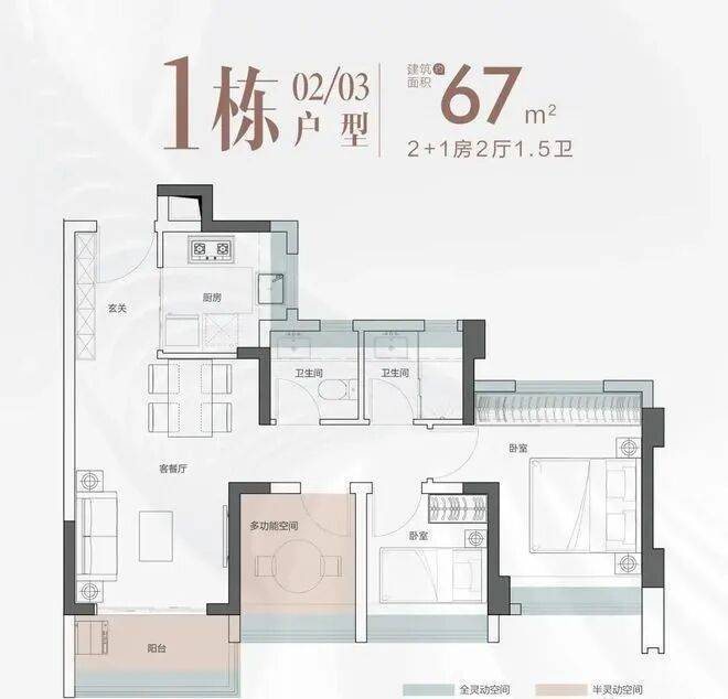 云麓将67㎡户型做到2+1房格局,对比市面上的大多数N+1房设计仅仅只是多隔了一个空间,尺度狭窄,采光差,而云麓花城做到真正意义上的“多一房”,不仅尺度与其他次卧等同,四面采光布局让全家人同享优越采光,实现真正的三房格局。