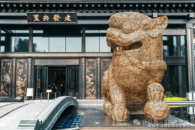建发的细节控,从未进门就开始呈现,花纹繁复的金水桥铺陈一地奢华,世间仅此一对的卐字镂空金狮镇守威严,采用建发专利3D扫描及打印技术打造。