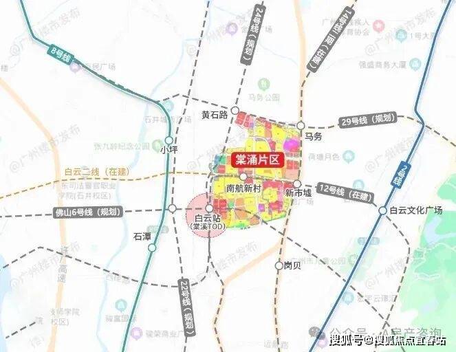 而在5月21日,又一个白云重磅利好发布——广州市规划和自然资源局公示了白云棠涌片区城市更新详细规划优化征询意见公示。与原规划相比,本次约有50宗地块明确了土地用途。整个片区约有8条地铁环绕,还有6个新的站点曝光。形成“两纵三横六地铁站”的走势。