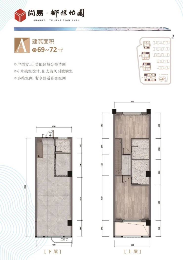 跃层三房:62-65-68-70㎡ 南北朝向