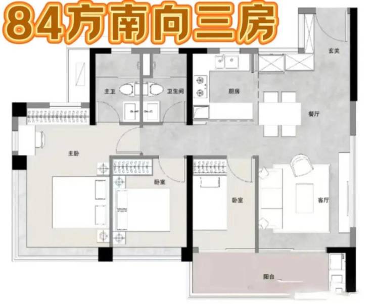 首推建面约82-108㎡南向新规超高使用率三/四空间