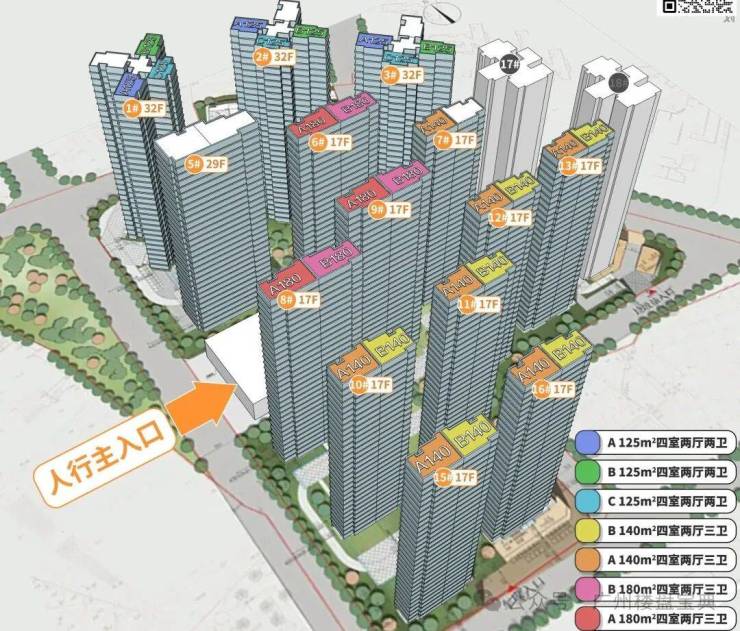 小区规模不算特别大,总建筑面积约 12 万平方米,规划了 6 栋住宅楼,共 324 户。容积率 3.0,绿化率 35%,楼间距比较宽,部分楼栋之间有 60 多米,采光和私密性都还不错。小区里做了园林景观,有中央草坪、儿童活动区和慢跑道,平时散步、带娃玩都有地方去。