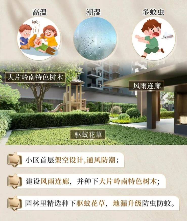 针对广州回南天的气候特色,小区首层做了立体架空设计,通风防潮;