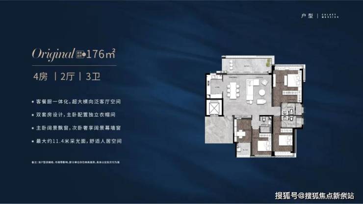 这户型同样实现了270°环幕瞰江,关键是还有约11.4米横向超大采光阳台!