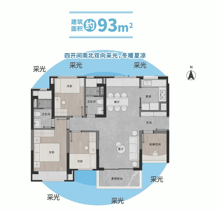 广建·云城学府响应新规,优化自身产品的户型设计,每个户型都能做到过100的使用率,且全产品均采用N+1户型设计,不仅为孩子留下一方安静的书桌,更能满足人生的各个阶段需求。从69㎡的2+1房户型,到83/93㎡的3+1房户型,110/182㎡的4+1房户型,无论单身生活,二人世界,三口之家,三代同堂都能应对自如。