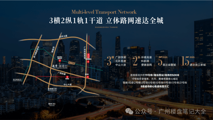 北环高速+广园快速+中山大道/环城高速+科韵路3横2纵主干道