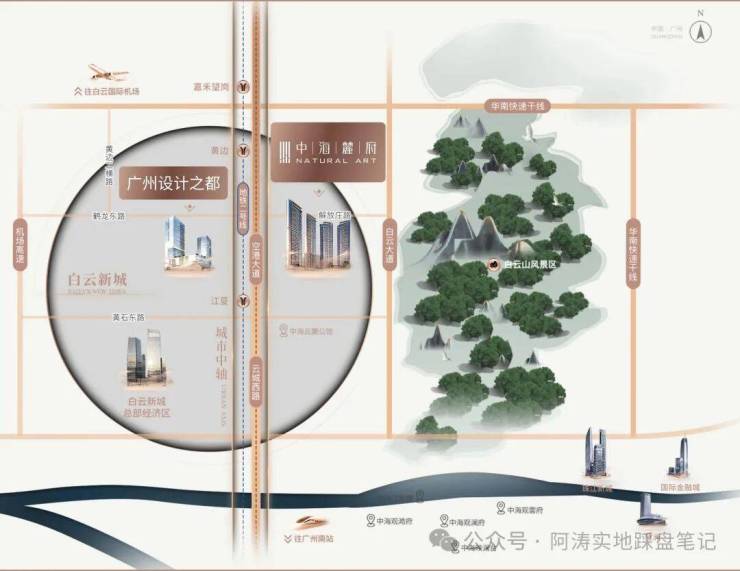 白云区的发展以三元里为起点,沿空港大道黄金中轴北上,涵盖白云新城、设计之都和白云机场。空港大道全长18.3公里,连接多个重点功能区。中海麓府位于空港大道旁,享有中轴潜力,见证白云变迁。