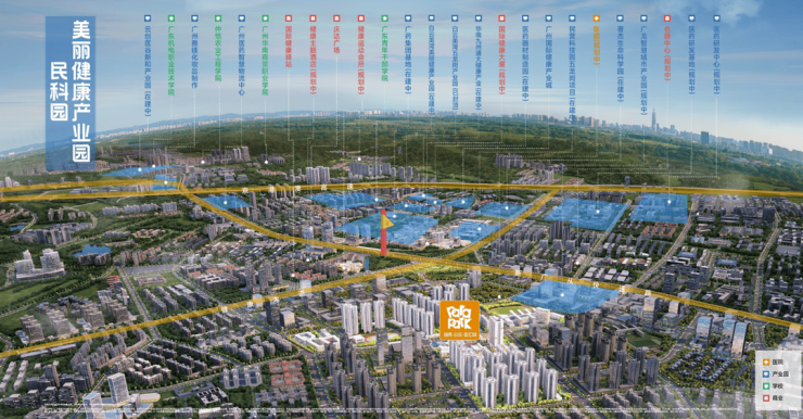 投资200亿,规模约等于22个广钢新城,已有何济公、明兴制、广药集团、和黄中药等29家知名健康产业企业入驻,健康城整体包含医药研制、职业教育、健康服务和健康养生四大功能片区。