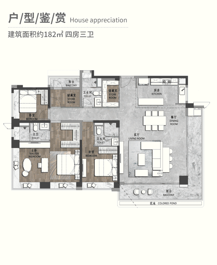 | 建面约182平四房板房效果图