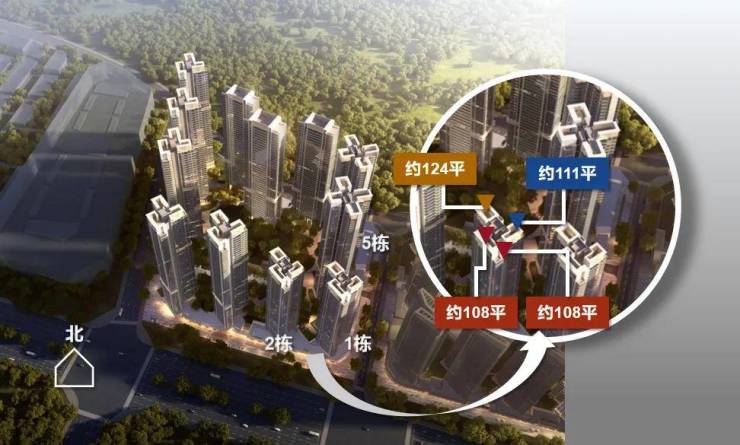 二期在售户型如下,建面约108-111-124平全南向纯四房。