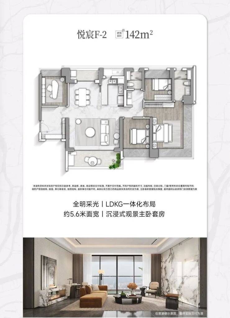 【悦宸F-2户型 建筑面积约142㎡】