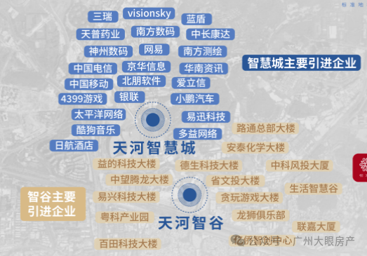 天河智慧城核心区,这里汇聚有网易总部、酷狗、南方测绘、小鹏汽车、极飞科技等企业大咖,此外德生科技、北明软件、极飞科技等新兴的高科技企业也纷纷进驻于此。