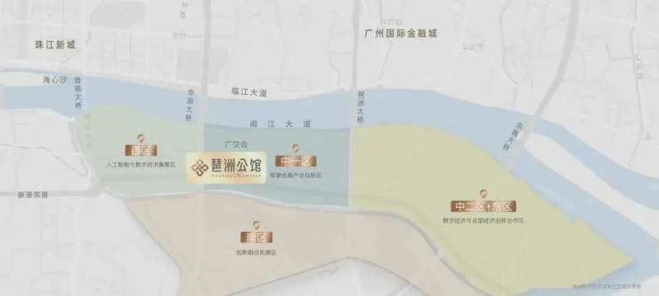 琶洲与珠江新城、金融城形成广州CBD黄金三角,琶洲定位为国家级人工智能与数字经济试验区、省级经济开发区、市级总部经济集聚区等创新平台称号,是广东省谨此一个在市中芯经开区,将打造“数字+会展+总部”融合创新的产业新高地。