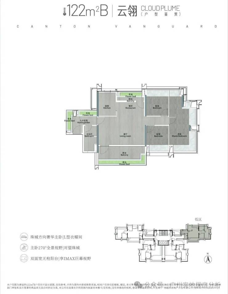 景观视野:部分高区户型可享270°环幕视野,对望珠江新城东西塔,景观资源优越。
