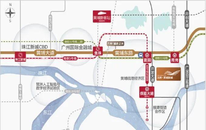 地铁13号线直达鱼珠、5号线直通珠江新城夏园站、南岗站、保盈大道站(在建中)三站点环绕。不过目前来看,地铁站有点距离,阅海组团不管走去夏园地铁站还是南岗地铁站,妥妥的都得小两公里。