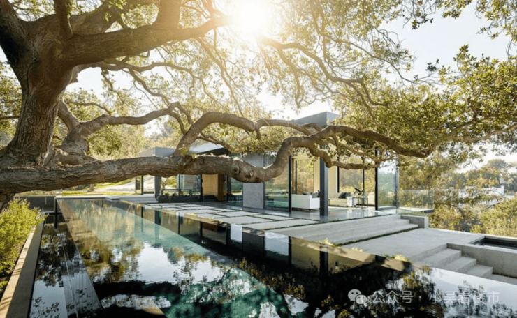 环抱着约11万㎡的古树公园,项目也道法自然,提出了“无界”的理念。教育地块,就环绕古树,做出了许多有趣的设计。