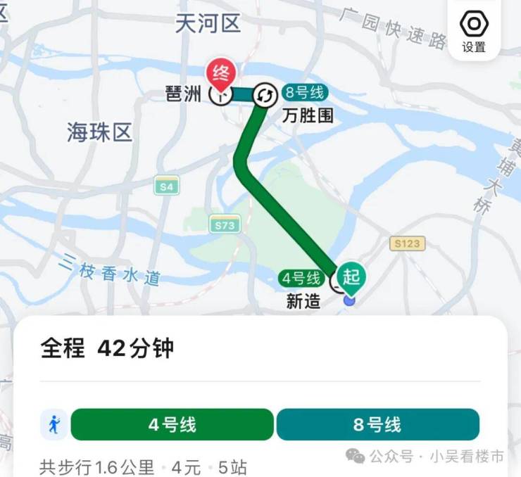 地铁去往琶洲:乘坐4号线到万胜围换乘8号线,再到琶洲,总共5个站,耗时42分钟左右。