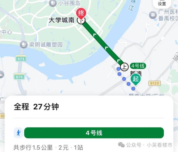 地铁去往大学城:乘坐4号线1个站直达大学城,全程耗时27分钟左右。