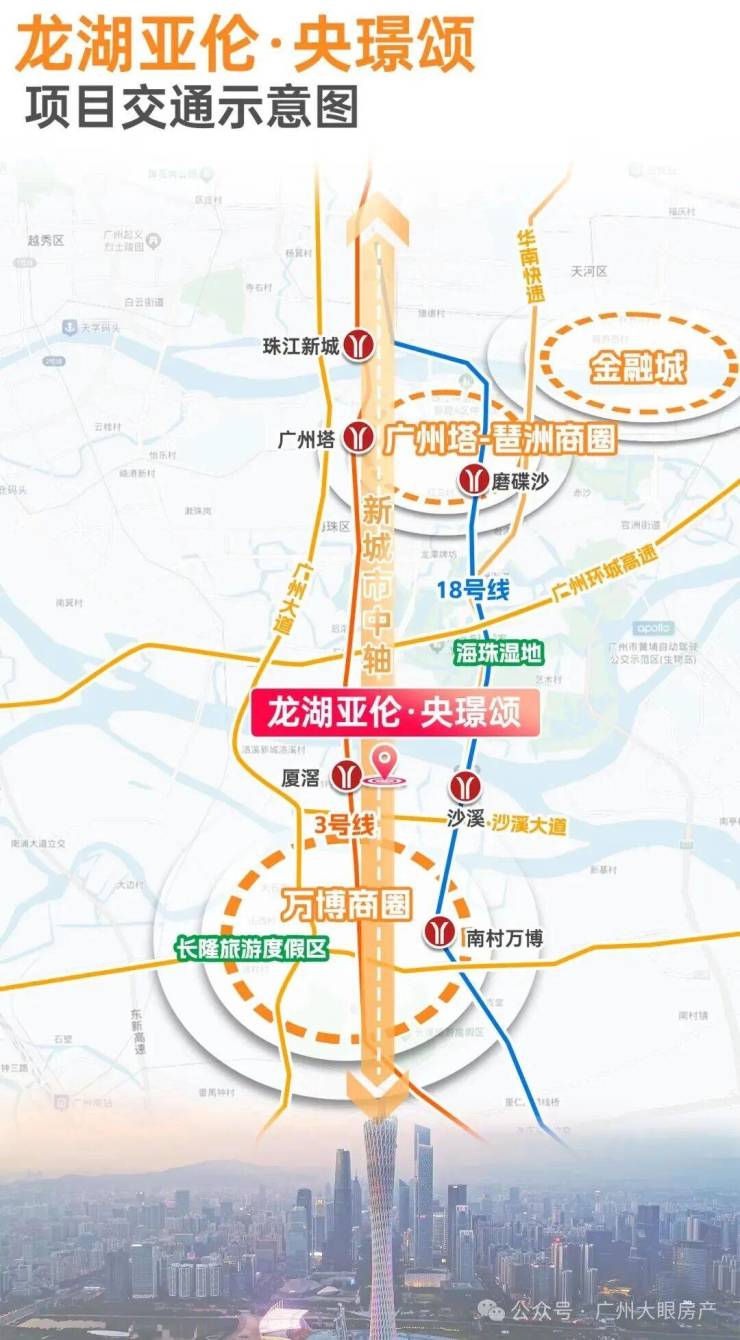 这个项目离沙溪地铁站大概600到700米,坐18号线1站到万博,2站到琶洲,3站就到珠江新城了。
