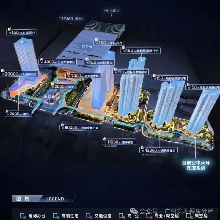 2、区域发展潜力大,项目位于广州北站商务区核心位置,周边规划有空铁联运枢纽、T4航站楼等,未来将带动区域经济发展,商业、人口聚集效应明显。