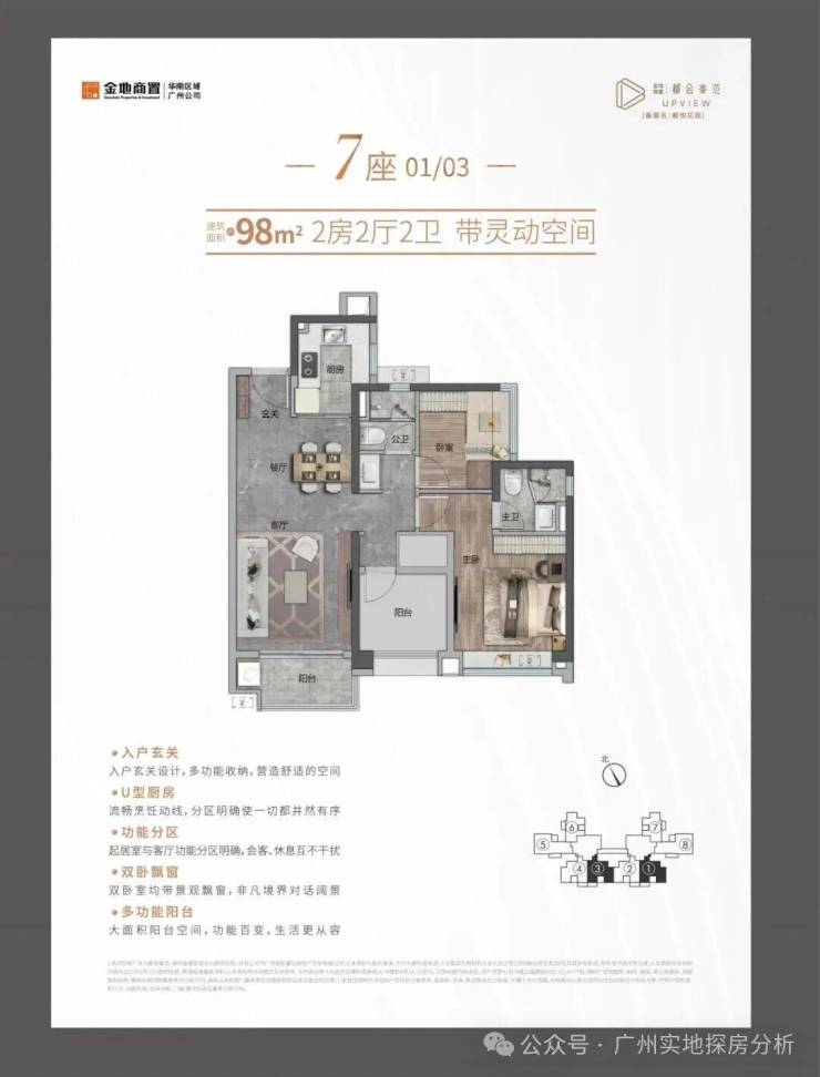 1、交通便利,项目紧邻地铁9号线广州北站,步行约200米即可到达地铁口,未来还将接入18号线、24号线等,实现30分钟直达广州主城区。同时,广州北站作为大湾区唯一空铁联运枢纽,可快速连接白云机场,交通网络覆盖高铁、城际、地铁等多种方式,出行效率高。