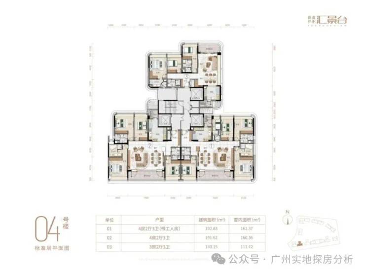 项目由14栋12层小高层组成,涵盖123-352㎡三至五房,共8类户型。