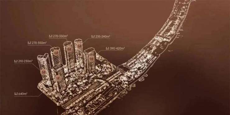 项目产品涵盖205-630平户型,呈半围合式布局,户户朝南、户户一线望江。