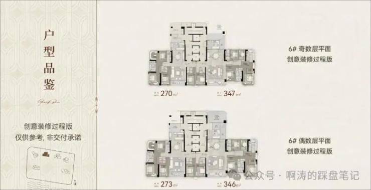 270/273㎡户型特点: 一层两户,3T2户独立梯厅互不扰; ·5.7*11.65m直厅宽敞大气; ·客厅、阳台、众数套房可正南望江及 琶洲会展; ·南北对流双阳台; ·工人梯独立动线,保障豪宅私密性; ·主卧270°景观转角飘窗; ·800mm飘窗可打; ·奇数层32㎡6.6m通高平台空间;