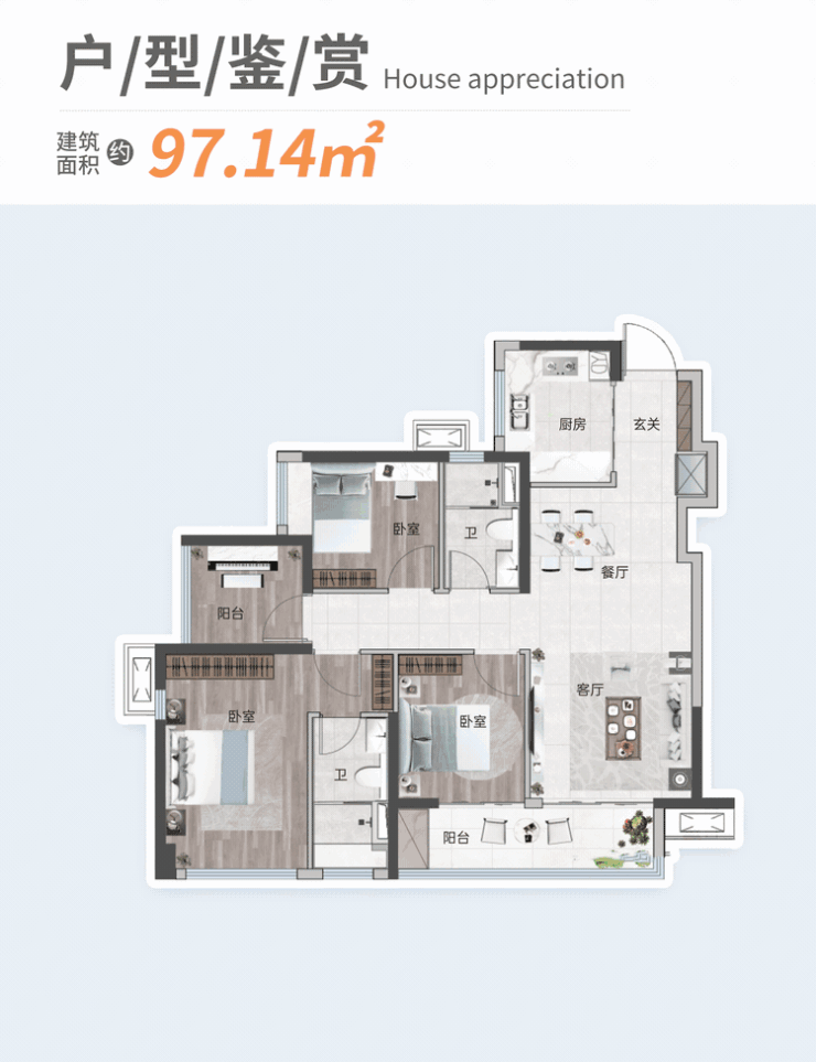 王牌户型【约84-101㎡ 3至4房2厅2卫】